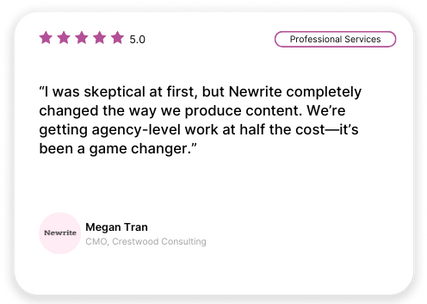 Calculate how much you can save and grow with Newrite's creative and content solutions—powered by top 1% talent and delivered under a fixed-price subscription with flexible add-on credits.